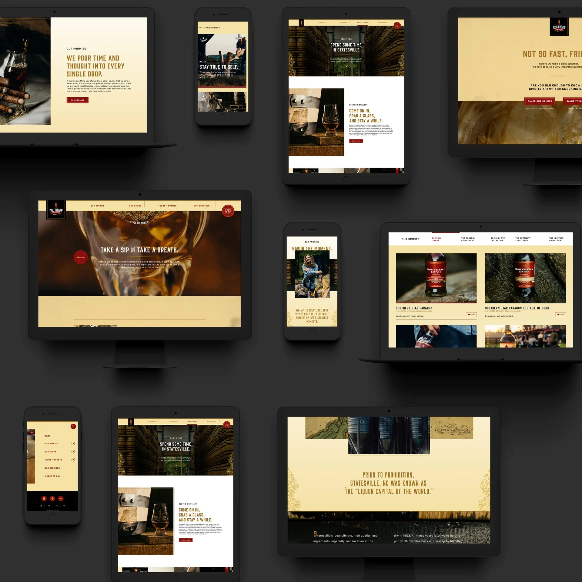 Our team, led by Ryan Doggendorf and Chase Stevens, seamlessly carried the refreshed brand identity into the design of a new website. The website now serves as the perfect platform to showcase Southern Distilling Co's story and products. It all has a home now.